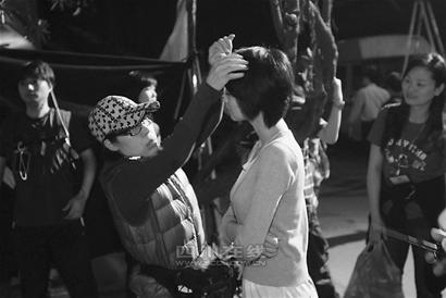 昨日拍攝的戲其實(shí)并沒有太多復(fù)雜的內(nèi)容,畫面就是高圓圓和鄭宇成在一條老巷子里面邊走邊說的畫面,不過兩人來來回回走了一晚上,拍攝了一個(gè)通宵。為了營造一種雨后的氛圍,劇組人員用水管將整個(gè)小巷子澆得濕漉漉的,連墻體都要全部澆濕。住在巷子里的居民都成為了群眾演員,該開店還開店,該打麻將還打麻將,只是不能在巷子里走動(dòng)而已。因?yàn)閮扇巳坑糜⒄Z對白,所以每次拍戲前高圓圓都拼命地練英語,特別是她還要背草堂的英文解說詞,難度很大!罢f好英語可能不容易,說熟了總沒問題吧?隨便什么語言,說上1000次,總歸熟練一點(diǎn)。”