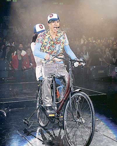 出動(dòng)私伙單車,城城一開(kāi)車即被女歌迷抱住。