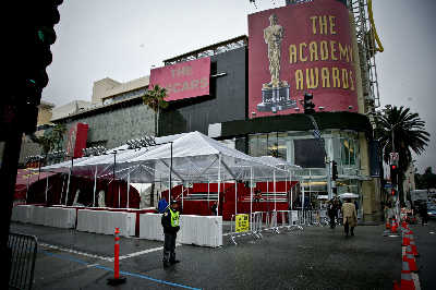經(jīng)過了美國編劇工會罷工的風風雨雨之后,第80屆奧斯卡頒獎禮將于美國西部時間24日下午5點(北京時間今天上午9點)在好萊塢柯達劇院如期舉行。由于近日洛杉磯陰雨連綿,為了防止嘉賓明星變成落湯雞,柯達劇院外的星光大道上紛紛搭起了遮雨棚,不過頒獎禮的制作人吉爾伯特·凱茨稱也不排除天公作美的可能,這樣到時明星們就能像往年那樣從露天廣場步上紅地毯。