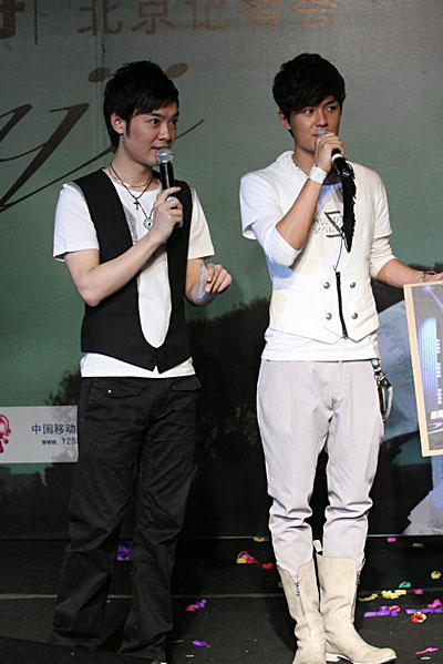 發(fā)布會(huì)上,身為同門師弟的人氣偶像阿穆隆還特別到場(chǎng)祝賀,不僅送上自己珍藏多年的馬頭琴還現(xiàn)場(chǎng)教吳克群擺POSS把玩馬頭琴。在主持人黃銳的追問(wèn)下,阿穆隆談起自己送上這份禮物的寓意:“首先馬頭琴是代表我們民族的樂(lè)器,并且它也將是今年北京奧運(yùn)會(huì)開(kāi)幕儀式所用到的開(kāi)場(chǎng)樂(lè)器,意義非常。另外就是希望師兄能用這把馬頭琴來(lái)教自己多一些音樂(lè)上的東西,尤其是在作詞方面令我十分佩服。之前給我和琇琇寫的《男人女人》很是感人……”。