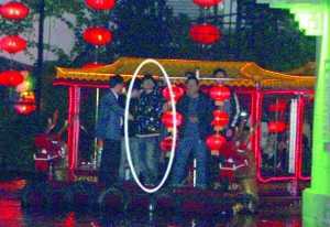 晚上10點(diǎn)多,周杰倫出現(xiàn)在白鷺洲公園。他乘坐的商務(wù)車前有警車開道、后有兩輛車跟隨,四輛車一路呼嘯開到碼頭前。杰倫一下車,四下頓時(shí)騷亂起來,很多人撲上前要把周杰倫拍下來。幾名警察把杰倫圍得嚴(yán)嚴(yán)實(shí)實(shí),送上了船,這才安靜下來。隨后,一船開道,杰倫乘坐的“聚寶號”緊隨,后有兩條船“斷后”。周杰倫的秦淮河之旅終于正式開始。