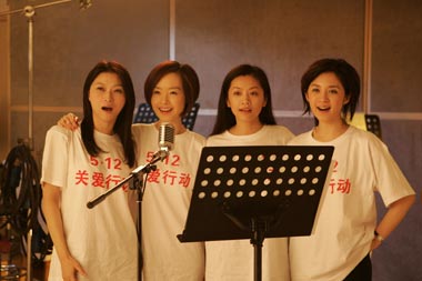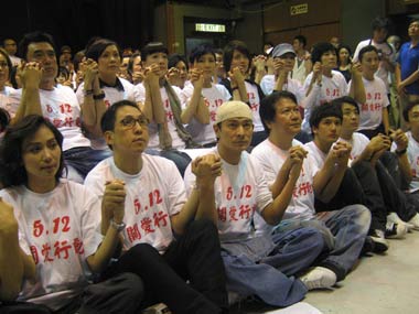 中新網(wǎng)5月16日電 中國四川省汶川縣遭遇特大地震災(zāi)害,震動(dòng)波及半個(gè)亞洲,數(shù)以萬計(jì)民眾罹難,災(zāi)情牽動(dòng)神州大地, 牽動(dòng)全世界關(guān)注的目光。香港演藝人協(xié)會(huì)、香港無線電視、亞洲電視、香港電臺(tái)、鳳凰衛(wèi)視、新城電臺(tái)六間機(jī)構(gòu)共同組織“一方有難,八方支持”行動(dòng),香港媒體及演藝界人士積極響應(yīng),15日深夜,兩百多位歌、影、視藝人及媒體從業(yè)人員齊聚香港電臺(tái),參與大合唱錄音,為四川地震災(zāi)民祈福、加油、打氣。