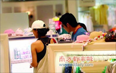 兩人在商場(chǎng)里悠閑漫步,先后去了三四家嬰兒用品柜臺(tái),挑選些小衣服,小奶瓶等嬰兒用品。夫妻二人在選購(gòu)過(guò)程中不時(shí)交流,挑選得十分仔細(xì)。雖然周圍的營(yíng)業(yè)員都在交頭接耳議論,似乎已認(rèn)出了陸毅和鮑蕾,但夫妻倆并未在意,只顧挑自己的東西。(小魚(yú))
