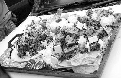 昨天,晨報記者和數(shù)家香港媒體同行在通往UmaParo酒店的道路上苦苦守候了一天,想盡了一切辦法試圖獲得婚禮核心區(qū)的消息。最后,梁朝偉、劉嘉玲也被記者們的誠意所打動,特地準(zhǔn)備了蛋糕給記者帶下山來。不過,面對蛋糕和可樂,饑餓的記者們的第一選擇卻不是分而食之,而是迅速掏出相機一陣狂拍。