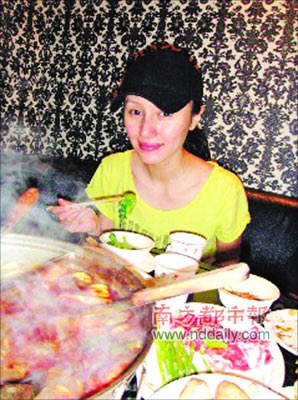 袁泉喜歡到敦南商圈逛街及品嘗美食。之前她超級想念臺北的麻辣鍋,這次人雖到了店里,卻害怕吃辣長痘影響容貌、破壞電影拍攝,只好忌口吃白鍋,眼巴巴望著經(jīng)紀(jì)人吃香喝辣,直喊“好過分”!(記者 黃銳海)