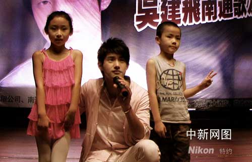 在歌友會上吳建飛演唱了《偏偏愛上你》、《你離開以后》等歌曲,還演唱了自己作詞,潘瑋柏譜曲的《手拉手》。接著又與幸運(yùn)歌迷大玩心心相印和夾乒乓球等游戲,引發(fā)現(xiàn)場歌迷連連尖叫。歌迷代表還貼心的送上風(fēng)箏,祝偶像一飛沖天,唱片大賣。最讓吳建飛驚喜的是現(xiàn)場來了2位年僅5歲的鐵桿小粉絲,居然都可以完整的演唱完吳建飛的新歌。在被問及七夕將至有何約會時,害羞的吳建飛漲紅了臉,坦言現(xiàn)忙于工作無暇去好好經(jīng)營一段感情。反而比較期待第二天的奧運(yùn)會開幕式。說起心目中女友的標(biāo)準(zhǔn),吳建飛表示兩個人在一起舒服就好了,但是她要顧家、體貼、溫柔,最重要是要孝順父母。