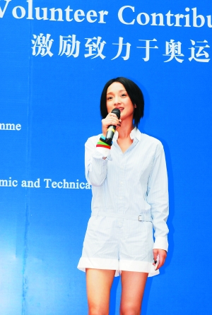 聯(lián)合國駐華系統(tǒng)選在在奧運開幕的前一天,與北京奧組委共同舉辦“為北京奧運志愿者喝彩”表彰活動。周迅昨天以聯(lián)合國開發(fā)計劃署中國親善大使的身份出席。