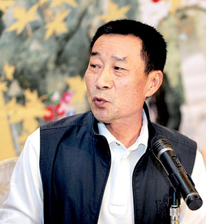 圖為李雪健在記者見(jiàn)面會(huì)上闡述自己的角色