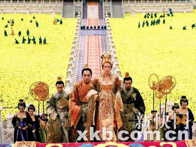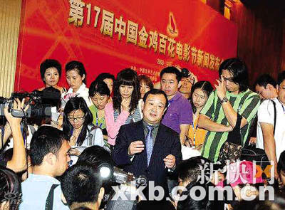 昨日上午11點(diǎn),第17屆金雞百花電影節(jié)新聞發(fā)布會(huì)在大連的富麗華酒店如期舉行,來自全國(guó)各地的百余家媒體記者們都齊聚一堂,聽電影節(jié)組委會(huì)關(guān)于提名影片規(guī)則方面的老調(diào)重彈。正當(dāng)大家都有點(diǎn)昏昏欲睡的時(shí)候,一位來自吉林某電視臺(tái)的記者突然提出了一個(gè)問題:“為什么讓大眾評(píng)委觀摩的影片由最初決定的10部變成了9部,獨(dú)獨(dú)缺了《滿城盡帶黃金甲》(以下簡(jiǎn)稱《黃金甲》)?”臺(tái)下的記者們聞言頓時(shí)議論紛紛,而臺(tái)上的電影節(jié)領(lǐng)導(dǎo)們也都表現(xiàn)得十分意外,由此引發(fā)了電影節(jié)開幕最大的話題——《黃金甲》為何退賽了?