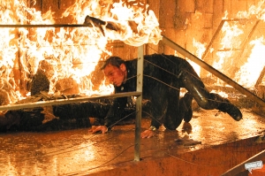 從《皇家賭場》開始,邦德再次回到寫實風(fēng)格,克雷格回憶說《量子危機》里他跑到疲于奔命。影片的時長是所有邦德片中最短的,但動作戲卻兩倍于《皇家賭場》。四場打斗戲不容錯過,意大利的追逐、奧地利大眼睛劇院的群毆、巴拿馬夜宴的混戰(zhàn)及最后智利沙漠的終極PK。意大利追逐戲是現(xiàn)下非常流行的“跑酷”(Parkour)風(fēng)格,需要克雷格在建筑物間靈敏穿梭,拍攝前兩個月的魔鬼訓(xùn)練讓他身心俱疲。而克雷格覺得最困難的是一場船上打斗戲,因為船身搖晃,令他覺得如同坐過山車,拍得膽戰(zhàn)心驚,那場戲花了兩個星期才拍成。