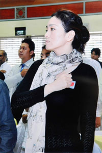 鞏俐和其他149名新公民一起宣誓,成為新加坡公民。
