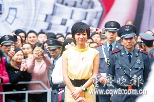 和郭富城上次來(lái)渝參加活動(dòng)一樣,昨天下午,解放碑中心到郵局一段,被主辦方用鐵柵欄圍了起來(lái),柵欄外的粉絲擠得水泄不通。不過(guò)老徐并沒(méi)有像某些明星一樣耍大牌,而是穿著一身無(wú)袖金色小禮服準(zhǔn)時(shí)出現(xiàn)在現(xiàn)場(chǎng),在10℃的低溫下赤膊上陣。粉絲們沒(méi)有上次郭天王來(lái)時(shí)聲嘶力竭的吶喊,倒是響起了各種評(píng)頭論足的聲音,大家最關(guān)注的是“徐靜蕾冷不冷”,當(dāng)然也有一些大媽級(jí)的業(yè)余“粉絲”頗有些失望地表示,“完全是個(gè)小女孩兒嘛!”