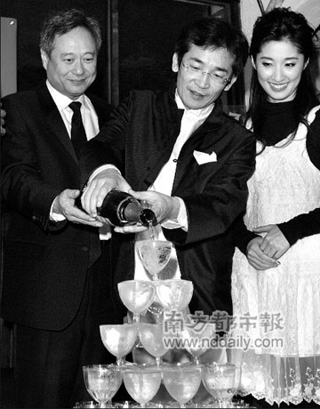 李安在金馬獎(jiǎng)上為魏德圣頒出“年度杰出電影工作者”的獎(jiǎng)杯,被臺灣媒體評論為具有“薪火相傳”的象征。在此后的慶功宴上,他還不斷被“撮合”到《海角七號》的慶功桌上,和全體“海角”演員交流,在臺灣記者們的不斷要求下,和魏德圣頻頻握手。以至于他在接受本報(bào)采訪時(shí)開玩笑地說,“和小魏握了不下100次手”。他笑稱:“握手是為了看看他有沒有需要幫忙的!
