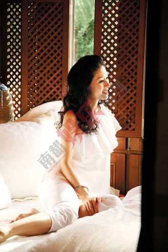 嘉欣換上多套輕薄春衫,在柔軟舒適的床上擺足POSE。