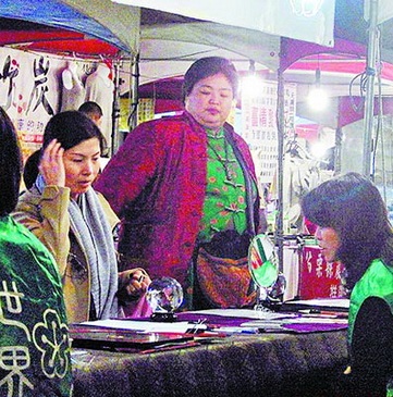 此攤一次收費220元,用的是易經(jīng)加西方塔羅牌合璧的“先天塔羅”,她望著桌上擺的水晶球“法器”發(fā)楞,卻遲遲不敢把心中所求何事全盤托出,得知要填個人資料后,她露出驚訝表情,婉拒離去,記者上前詢問,店家不愿透露,僅低調(diào)說:“這是人家的私事,我們也不方便說!