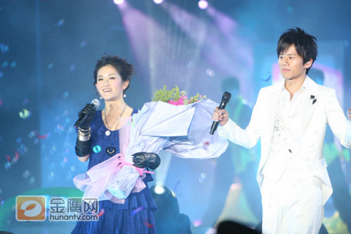 湖南衛(wèi)視12月31日的跨年演唱會上,經(jīng)過主持人何炅的一番調(diào)侃之后,備受期待的張杰和謝娜的對唱《明天過后》終于登場了,張杰一身白色西服登場,頗有白馬王子的風(fēng)范,而一向敢說敢做的謝娜在張杰的身邊則顯得小鳥依人,當(dāng)張杰主動拉起她的手時,更是羞得滿臉通紅。一首《明天過后》被張杰和謝娜唱得柔情蜜意,尤其是四目相對時,更是閃現(xiàn)著無數(shù)的火花,被主持人何炅調(diào)侃像一個婚禮一樣。