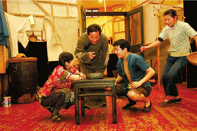 昨天,話劇《龍須溝》在北京人藝首次公開排練。楊立新飾演的“程瘋子”張嘴就是數(shù)來寶。楊立新說:“程瘋子是曲藝藝人,但是在前幾幕戲中他一直沒有唱,還要演出他的身份,因此很難演!睘榱怂茉旌眠@個角色,他此前還去了安定醫(yī)院體驗生活。