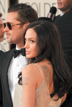 銀色情侶檔布拉德·皮特與安吉莉娜·茱莉雙雙入圍金球獎(jiǎng),俊男美女搶盡鋒頭。茱莉穿Atelier Versace禮服、露出修長玉腿和戴墨鏡的皮特十指緊扣踏上星光大道,但兩人都以微笑代替說話,連媒體想訪問皮特,都被茱莉巧妙帶開。