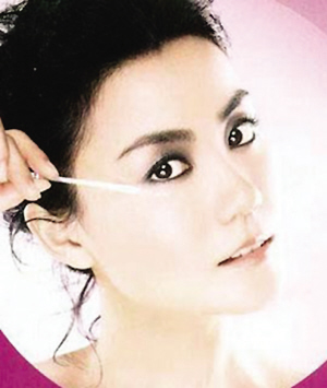 在王菲代言的護(hù)膚品廣告中,為了凸顯雙眸的緊致,化妝師用深咖啡眼影在其眼皮前端上方位置進(jìn)行加重渲染?墒巧钌塾凹把劬反而阻擋了清澈雙眼本身具有的靈氣。這款眼妝造型雖成熟但卻讓王菲顯得世故俗氣,老氣橫秋。