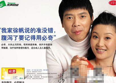 徐帆和馮小剛也曾以消費(fèi)者的身份推銷過某品牌止瀉藥。
