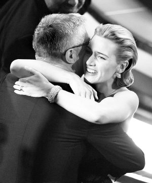 在紅毯上,凱特一襲灰藍色的曳地長裙,顯得從容雅致。但面對記者的提問,她卻坦言自己非常緊張:“我的父母也來為我助威了,可我還是非常緊張。其實我的腿在裙子里一直顫抖,只是裙子太長你看不到而已。”凱特開玩笑地說。有記者問她是否準備了獲獎感言,凱特表示想過:“我還問了我的小孩,如果媽媽獲獎該說些什么,女兒的回答太不靠譜了,兒子則讓我感謝所有幫助過我的人!