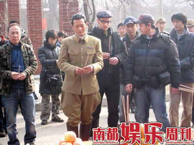高群書的電影處女作《東京審判》曾獲得了廣泛的好評,而在此之前他曾拍攝了大量的刑偵劇,其中最成功最有名的就是孫紅雷主演的《征服》。記者從劇組的拍攝通告上發(fā)現(xiàn)正月十六這一天拍攝的是王志文審訊女刺客的戲,而扮演女刺客的是《征服》的女主演劉威葳,去年劉威葳曾主演了王小帥的影片《左右》。兩年多前《征服》火爆熒屏的時候,就有圈內(nèi)人士告訴記者,劉威葳就是導(dǎo)演高群書的女友,兩人已相戀多年,早在高群書的那部主要由非職業(yè)人員出演的系列劇《命案十三宗》中劉威葳就出演過其中的一集。記者在片場看到劉威葳梳著三十年代流行的女性的“雞窩”發(fā)型,穿著一件破爛的染著“血跡”的裙子,據(jù)一位知情人士向記者透露,劉威葳扮演的女刺客雖然戲份不多,但很重要,影片的一開場就是她刺殺日本要員的重頭戲,因為她負(fù)傷被俘,才意外使日軍懷疑內(nèi)部有間諜,從而展開調(diào)查。