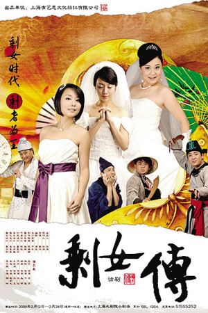 《剩女傳》是一出相當(dāng)時(shí)髦且“雷人”的舞臺(tái)綜合藝術(shù)表演——缺乏嚴(yán)謹(jǐn)?shù)膽騽〗Y(jié)構(gòu),但是符合央視春晚小品的審美趣味。全劇塑造了三個(gè)大齡“剩女”形象——強(qiáng)勢的芳芳、愛錢的美麗和哲學(xué)博士書嘉,在現(xiàn)實(shí)生活中找不到對象,于是被愛神“發(fā)配”到古代,遇到了許仙、江洋大盜和捕快。如果她們能找到愛情就能回到現(xiàn)代。急于回到現(xiàn)代的芳芳,向許仙自我介紹:“我叫白素貞,街坊鄰居都叫我白娘子,你可以叫我娘子……”她脫口而出自己最愛的菜是“KFC”,許仙接口道:“開封菜!”美麗穿越時(shí)空后成為小青,卻說的一口東北話,看到許仙從帽子里拿出的傳家長命鎖上足有15克拉的鉆石后,竟然表示要和白素貞搶“男友”。許仙自己也說:“我被雷到了”……