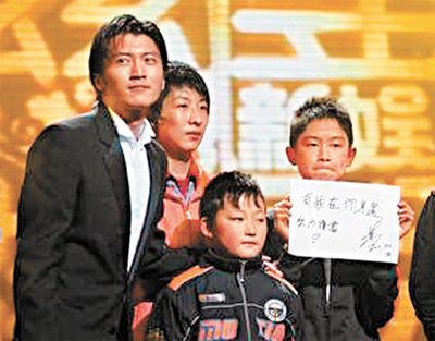 霆鋒多年來一直資助50名內(nèi)地失學(xué)兒童,前晚大會(huì)安排頒獎(jiǎng)給霆鋒的5名兒童,皆來自四川地震災(zāi)區(qū)都江堰,且全是由霆鋒資助上學(xué)。近一年來備受家事困擾的霆鋒,首次見到自己捐助的小孩,頓時(shí)百感交集,他緊緊地抱住這些小朋友,然后眼濕濕哽咽說:“每當(dāng)我拍戲受傷或者心情低落時(shí),我就會(huì)想自己不能倒下,可能有50個(gè)家庭靠我給他們一頓飯吃。因?yàn)檎J(rèn)識(shí)了他們,我才知道自己有多幸運(yùn),同樣是黃種人,為什么謝霆鋒可以追逐自己的夢(mèng)想,他們卻沒有這個(gè)機(jī)會(huì)!弊詈笏膭(lì)小朋友說:“叔叔不怕痛和累,你們也不能放棄!