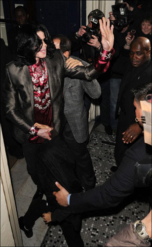 宣布要回歸歌壇,進(jìn)行最后的演唱的天王邁克爾·杰克遜,3月7日帶著自己的兒子一起現(xiàn)身英國(guó)倫敦的 Royal Theatre 觀看音樂劇,引發(fā)了歌迷們的追蹤狂潮,邁克爾·杰克遜也不愧為見過大場(chǎng)面的人物,不時(shí)的向歌迷揮手并拋去飛吻。