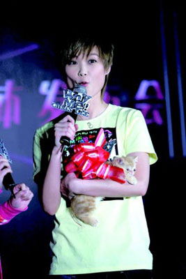 作為天娛掌門人,龍丹妮送上的禮物也最特別——一只剛出生不久的小貓咪。這個淘氣的小家伙長相酷似春春最愛的卡通角色加菲貓,李宇春當場為它取名“加菲”,還宣布要為它找一只“歐弟”。