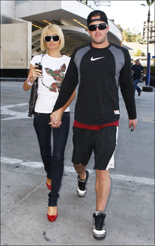 當(dāng)天的帕麗斯·希爾頓真的是靚麗無比。白邊框黑鏡片新款墨鏡,配上了白色T恤,T恤上面的小狗圖案醒目可愛,配上手上的CHANEL手環(huán),緊身牛仔褲真是好看。而腳上的紅色高跟鞋惹眼,贊一個(gè)吧。