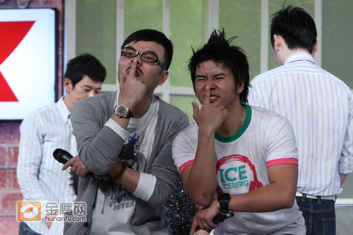 全國(guó)著名局部模特參加湖南衛(wèi)視著名脫口秀節(jié)目《天天向上》的錄制,在模特們換裝的時(shí)候,主持人汪涵、歐弟為模特當(dāng)起“更衣簾”,并不斷做出搞怪的表情,笑翻全場(chǎng)。于慧娜 攝