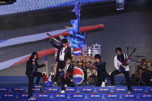 “五月天”也“禮尚往來”,將為“蓋世群音”百事樂隊(duì)大賽所特別創(chuàng)作的主題曲之全亞洲首唱奉獻(xiàn)給百事可樂及現(xiàn)場的所有觀眾。