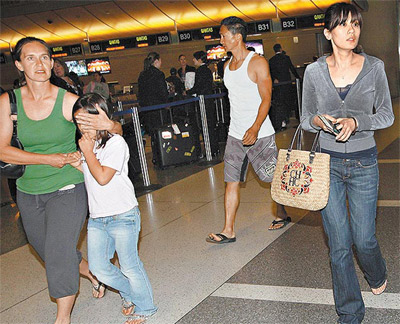 賈靜雯由堂哥、堂嫂和小侄女送到機(jī)場,她一臉?biāo)仡仭⒙燥@憔悴,穿著灰色運(yùn)動(dòng)帽T、牛仔褲跟夾腳拖鞋,弟弟韋斯利因工作已先行返臺。她見記者守候在機(jī)場有些訝異,但很快就恢復(fù)鎮(zhèn)定對記者說:“你們辛苦了。”如愿見到女兒的她說:“我終于可以放心地好好睡覺了!