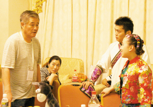 很少能看到趙本山和小沈陽同臺表演,這次海南之行的首場演出,恐怕也是“劉老根大舞臺笑轉(zhuǎn)2009”全國巡演中唯一一場本山師徒同臺的表演,因為觀眾是參加博鰲論壇的國際政要和經(jīng)濟專家。在演出后臺,本山首先演練了一遍即將在舞臺上表演的“吹拉彈唱”,隨后就開始對自己的徒弟一一評點。別看徒弟們個個在舞臺上精神抖擻,但在面對如此大場面時不免有些緊張,紛紛對師父說出自己的顧慮!皠e緊張,就當(dāng)是在咱們沈陽中街基地演了!”“你這個口我看可以使,沒關(guān)系,出了事我兜著!薄澳阒虚g的那一段就不要加了,不好,不文雅。”面對徒弟,本山嚴肅認真地對他們的表演提出要求。因為對徒弟的表演和絕活爛熟于心,本山三言兩語就指出了他們的不足,并且提出了建議。有了他的點撥,徒弟們個個信心十足地走上了舞臺……