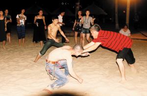 本山的好人緣在圈里是公認的,張藝謀曾在記者面前評價趙本山是“絕對好人”。在徒弟面前,趙本山同樣也是他們的朋友和哥們兒。在海南巡演期間,記者感受到了本山和徒弟的親密無間,在飯桌上,徒弟們和本山推杯換盞就像是朋友。此時,本山也沒有平時的架子,他會和大家談笑風(fēng)生,整個演出團隊打成一片。無論是誰,只要有演出、生活的問題,本山肯定耐心勸慰,讓他們拋開顧慮。興致來了,本山還會不顧年齡的差異和徒弟們在沙灘上摔上幾跤。男孩子可以和師父摔跤,但女孩子都希望與本山合影,面對著一望無際的大海,女演員和舞蹈隊的姑娘們提出了與本山合影的要求。本山對孩子們的要求不會拒絕,他甚至?xí)鲃庸律碜舆w就個子稍矮的女孩子。當(dāng)十多張照片拍完之后,記者明顯看到本山有了疲憊的跡象,于是提出“讓趙老師歇會兒再拍吧”,但本山堅持和每個演員照完!半y得有這樣的機會和大伙玩,都是自己人。”輕描淡寫的一句話,迅速拉近了自己和演員們的關(guān)系。