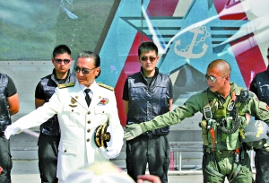 昨日,除了謝霆鋒變身帥氣飛機師,連“四哥”謝賢也穿上白色的海軍服扮成“艦長”,為兒子3年來的首張專輯發(fā)布助陣。