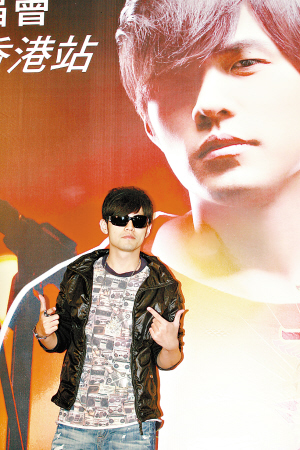 周杰倫在香港的記者會(huì)上。