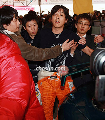 中新網(wǎng)11月12日電 據(jù)朝鮮日?qǐng)?bào)報(bào)道,11日在龍仁愛(ài)寶樂(lè)園SPEEDWAY舉行的“CJ超級(jí)賽”第7輪比賽上,參加TOURING A項(xiàng)目預(yù)選賽的R-STARS隊(duì)的柳時(shí)元,比賽結(jié)束后,因?yàn)樵诒荣愔械氖鹿识cNRT選手孫炳勛發(fā)生口角。