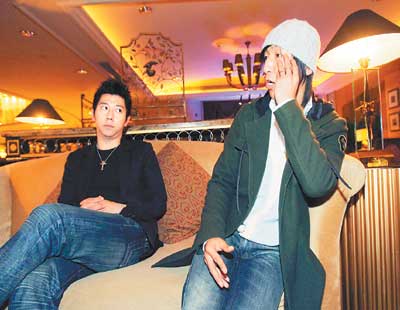 昨晚,受某演出商之邀,羽泉到重慶進(jìn)行一場商演。胡海泉下午已經(jīng)提前到達(dá),而由于陳羽凡的班機(jī)比較晚,和記者的采訪也約在了晚上7點半。沒想到過了8點,一身休閑打扮的羽泉才一起出現(xiàn)在酒店大堂,羽凡戴了頂灰色的絨線帽,有點風(fēng)塵仆仆的樣子,好像心情還不太好。坐了幾分鐘,一臉不快的羽凡終于憋不住了,原來遲到是因為剛剛路上出了點意外,“我們的車剛剛被追尾了,那些人還打傷了我的司機(jī)!