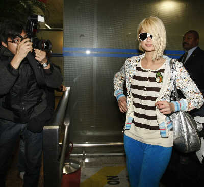 希爾頓乘坐的航班原定應(yīng)于昨日18時半抵達(dá)浦東機(jī)場,因種種原因而延誤到昨日19時20分左右抵達(dá)。幾分鐘后,希爾頓與六七名隨行人員出現(xiàn)在到達(dá)大廳。只見這位金發(fā)女郎身著彩色卡通衫、湖藍(lán)色長褲,腳踩白色球鞋,戴著金邊蛤蟆鏡。一名MTV的工作人員在她身邊全程拍攝,據(jù)悉這一切將被剪輯成一個希爾頓在上海的30分鐘短片。在等候行李的時間里,希爾頓并沒閑著,一直在把玩自己的手機(jī)。很快,取好行李的一行人從空乘人員的專用通道走出,在場記者立即一擁而上,而希爾頓面帶微笑,友好地停下擺POSE任由拍攝。面對各路媒體拋出的問題,她耐心地一一作答,談及對于上海的第一印象,她興奮地表示:“第一次來中國非常開心,上海是座美麗的城市。”她表示自己對此次上海之行充滿期待,“除了參加超級盛典以外,我會利用閑暇時間在上海好好游玩一下!