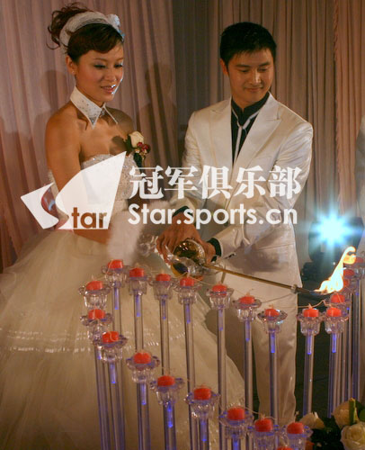 田亮和葉一茜的婚禮于今天中午12點在西安香格里拉大酒店舉行。中國奧委會副主席、北京奧組委執(zhí)行副主席楊樹安,游泳中心副主任、中國跳水隊領(lǐng)隊周繼紅分別發(fā)來賀電并贈送了花籃。陜西省體育局局長李明華在發(fā)表賀辭時稱田亮為“民族英雄”。