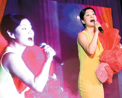 昨晚7點(diǎn)10分,記者趕到解放碑新開業(yè)的重慶國貿(mào)豪生大酒店,酒店的開業(yè)晚宴在9樓的宴會(huì)大廳內(nèi)舉行。在近10分鐘的一通開場桑巴熱舞過后,毛阿敏出場了。她用手提著淺綠色長裙腰間部位,緩步走上舞臺(tái)。伴奏樂響起,毛阿敏輕抬話筒張口:“你從哪里來,我的朋友,好象一只蝴蝶飛進(jìn)我的窗口……”