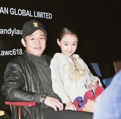 據(jù)香港明報報道,華仔前晚(12月24日)在個唱表演拉丁舞時,多了一名舞藝精湛的7歲小妹妹,當華仔介紹這位小妹妹是李連杰的女兒Jane Li后,令全場起哄。阿Jane事后回到臺下李連杰身旁,華仔即對李連杰說:“杰哥,多謝你囡囡今晚跟我表演,她真的跳得很好,今晚你來支持,我十分感動!比A仔更叫小Jane等他再年輕些,到時再一起跳舞。
