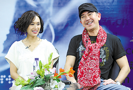 美麗的朱茵顯得很正式,她緊閉雙腿,端端正正地坐在座位上。黃秋生則很是放松,雙腿叉開,庸懶地坐在座位上,不時用自己的大拇指捺一捺自己嘴唇上的性感胡子。他這個樣子與上午影迷見面會上的表現倒是很像。當時,黃秋生蹺著二郎腿,雙手隨意地放在一條腿上,左手手腕上的手表白閃閃地對著眾影迷的眼睛。再加上他一副不茍言笑、若有所思的樣子,不知道原委的人還以為他在為某知名手表拍廣告片呢。