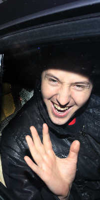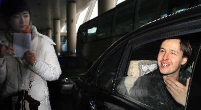 昨日下午從2點多開始,機場大廳就陸續(xù)出現(xiàn)前來接機的歌迷。數(shù)十名鐵桿粉絲裝備齊全,有的手捧鮮花,有的拉開寫著俄語“歡迎回家”字樣的橫幅。15點56分飛機抵達機場,數(shù)分鐘內(nèi),Vitas就飛速地從出口走出,黑夾克黑褲子的他雖然衣著低調(diào),還是被眼尖的歌迷認出,接著機場大廳迅速充斥著呼喊Vitas名字的尖叫聲。眼見歌迷的熱情,Vitas友善地用中文回應(yīng)大家:“我愛你們!”短短四個字令歌迷更加瘋狂。有人甚至沖破層層障礙沖到Vitas身邊,把鮮花送予其手中,獻花成功的該歌迷立刻引來其他人的羨慕眼光。Vitas行色匆匆地走至停車場,露臉不過短短幾分鐘后,鉆進了黑色寶馬車內(nèi)。臨走前,他一個轉(zhuǎn)身,朝剛才護駕的歌迷送出一個飛吻。