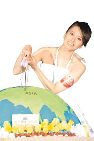 梁詠琪昨日在簽約時以切割地球展露自己沖出亞洲的野心。