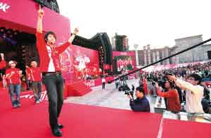 前日傍晚,由香港知名音樂人林夕和雷頌德共同為奧運(yùn)贊助商創(chuàng)作的歌曲《紅遍全球》在奧運(yùn)圣火點(diǎn)燃之際發(fā)布。在韓國(guó)著名組合Super Junior成員韓庚領(lǐng)頭下,18名來自全國(guó)各地的奧運(yùn)火炬手與前奧運(yùn)冠軍高敏等一起現(xiàn)場(chǎng)演繹了這首歌。作為目前韓國(guó)最當(dāng)紅的組合Super Junior(以下簡(jiǎn)稱SJ)里面唯一一個(gè)中國(guó)成員,韓庚在中國(guó)的人氣銳不可擋,對(duì)于這次有幸擔(dān)任1號(hào)火炬手,他前晚接受本報(bào)獨(dú)家專訪時(shí)表示感到很開心,一定要看奧運(yùn)的開幕式,并且他透露今年會(huì)將大部分時(shí)間放在中國(guó),而且SJ也會(huì)分組一隊(duì)專門針對(duì)中國(guó)市場(chǎng)的組合,并計(jì)劃推出中文專輯。