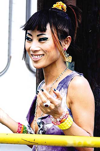 白靈真空亮相洛城街頭 怪異打扮引行人側(cè)目(圖)