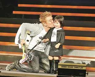 任賢齊(左)前晚開(kāi)唱時(shí)親女兒臉頰。